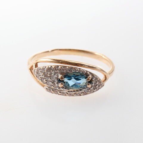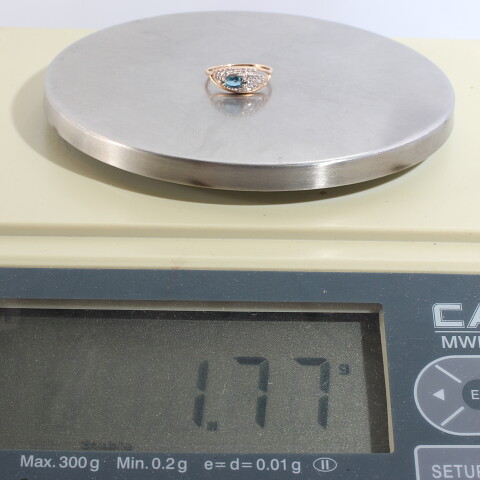 УИН: 6432501469986515Описание вставок: 1 Голубой недрагоценный камень,30 Прозрачных недрагоценных камнейОбщий вес: 1.78Чистый вес: 1.63Вес вставок: 0.15Высота, мм: 7Высота шинки, мм: 2