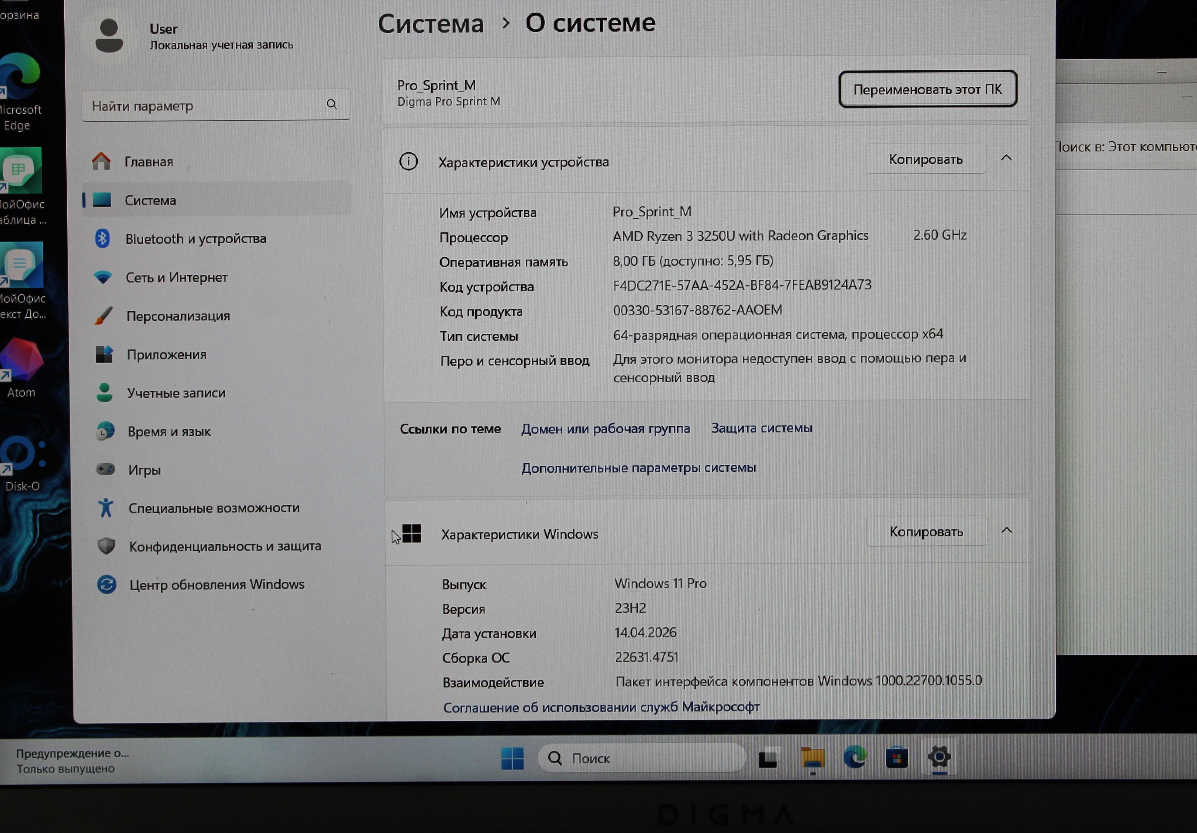 Ноутбук DIGMA DN16R3-8CXW01