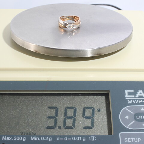 Кольцо золото 585, общий вес - 3.89 г, чистый вес - 3.879 г