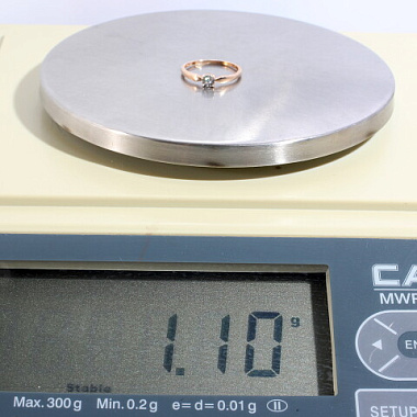 Кольцо золото 585, общий вес - 1.1 г, чистый вес - 1.094 г
