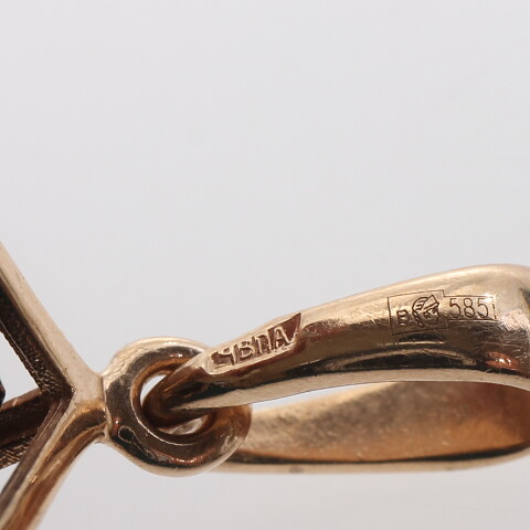Подвеска золото 585, общий вес - 2.82 г, чистый вес - 1.048 г