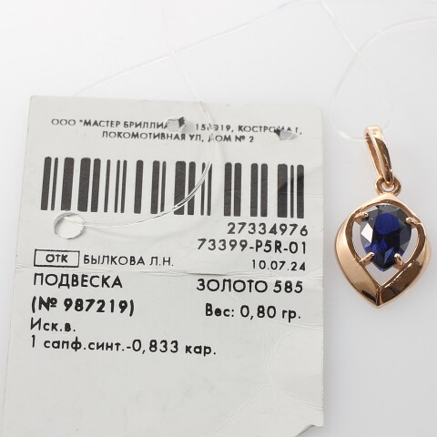 Подвеска золото 585, общий вес - 0.8 г, чистый вес - 0.237 г