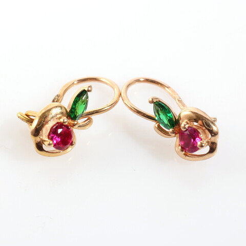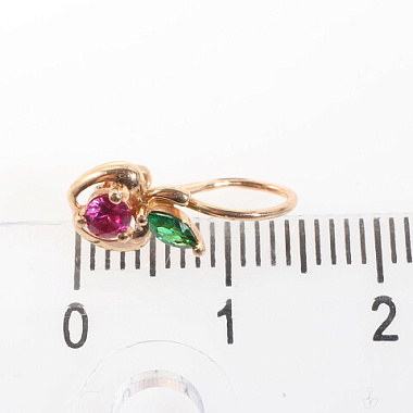 Описание: вид замка - французскийУИН: 6432600002417520Описание вставок: 1 Розовый недрагоценный камень,1 Зеленый недрагоценный каменьОбщий вес: 0.69Чистый вес: 0.582Вес вставок: 0.108Высота, мм: 15