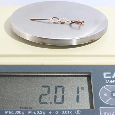 Серьга золото 585, общий вес - 2.01 г, чистый вес - 1.92 г